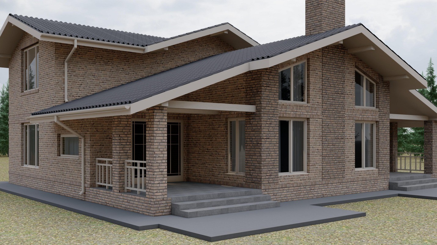 В отделке цоколя применяется полнотелый облицовочный кирпич (размерами 215х102х65) формата WDF ручной формовки Донские Зори "Архангельское" и цветная кладочная смесь PEREL шоколадного цвета.