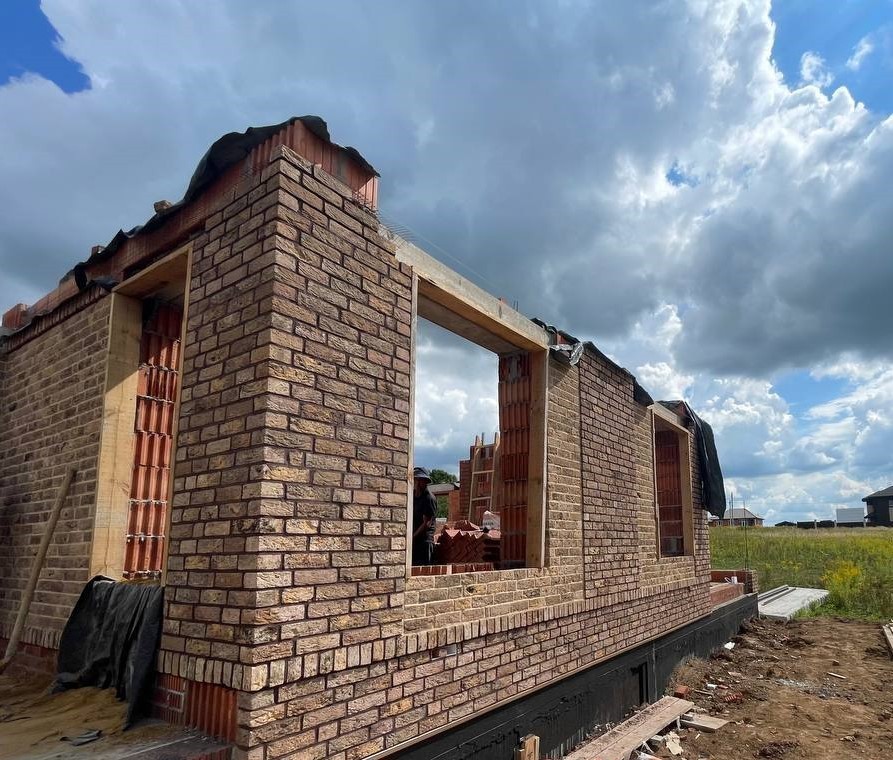 В отделке фасадов применяется полнотелый облицовочный кирпич (размерами 215х102х65) формата WDF ручной формовки Донские Зори "Архангельское".