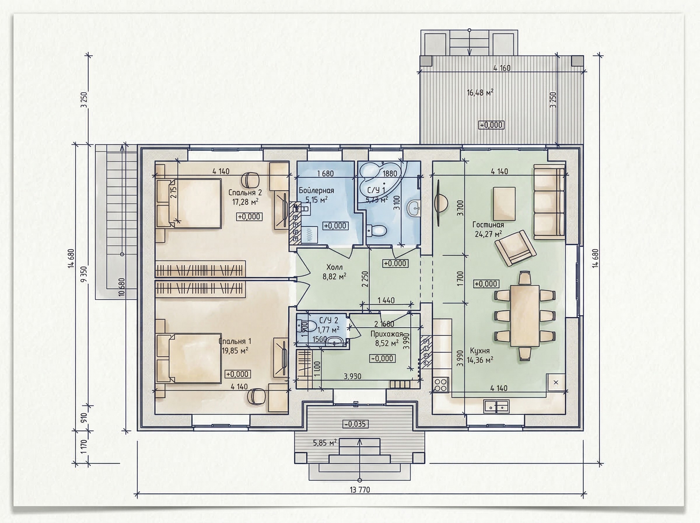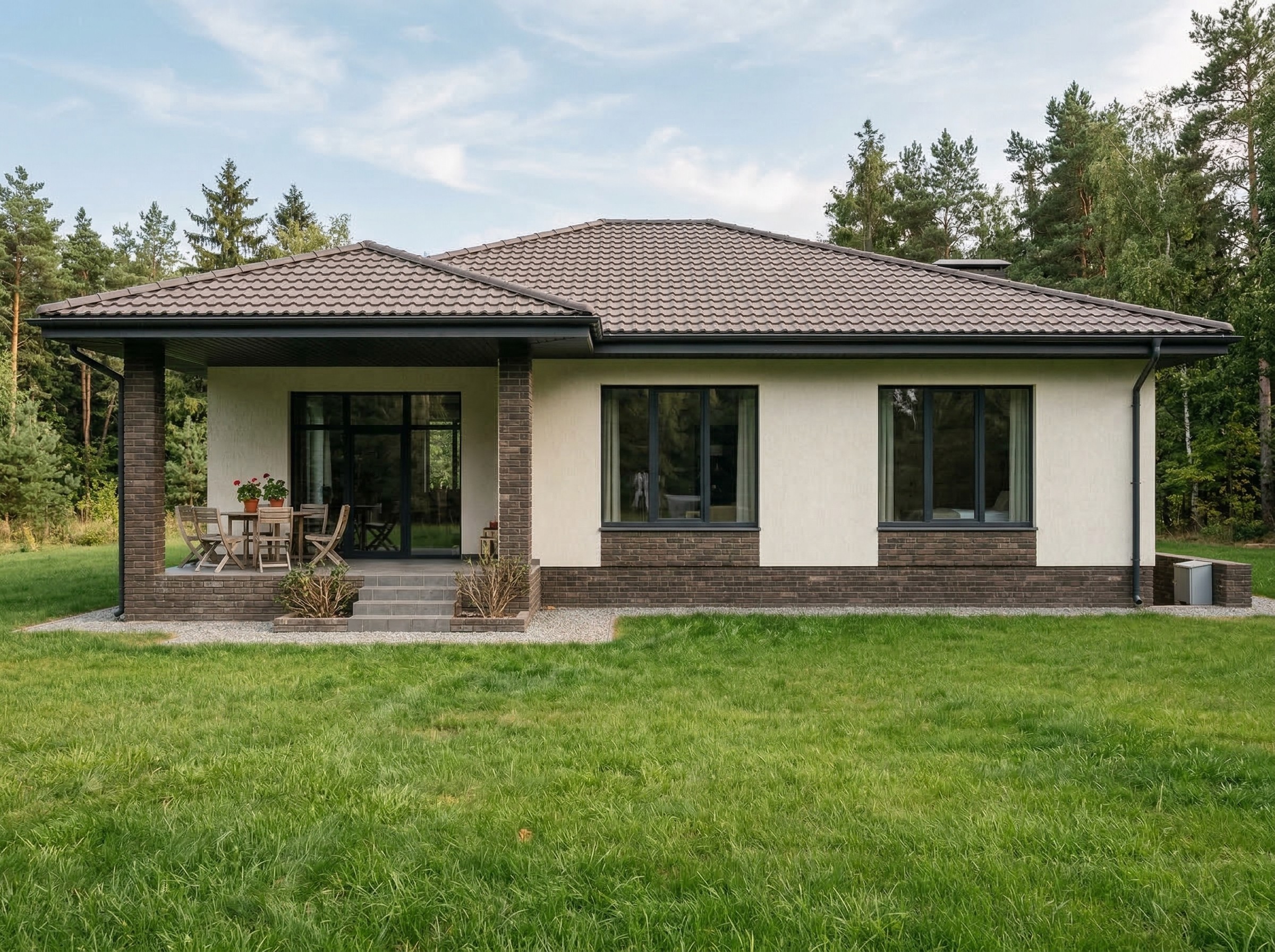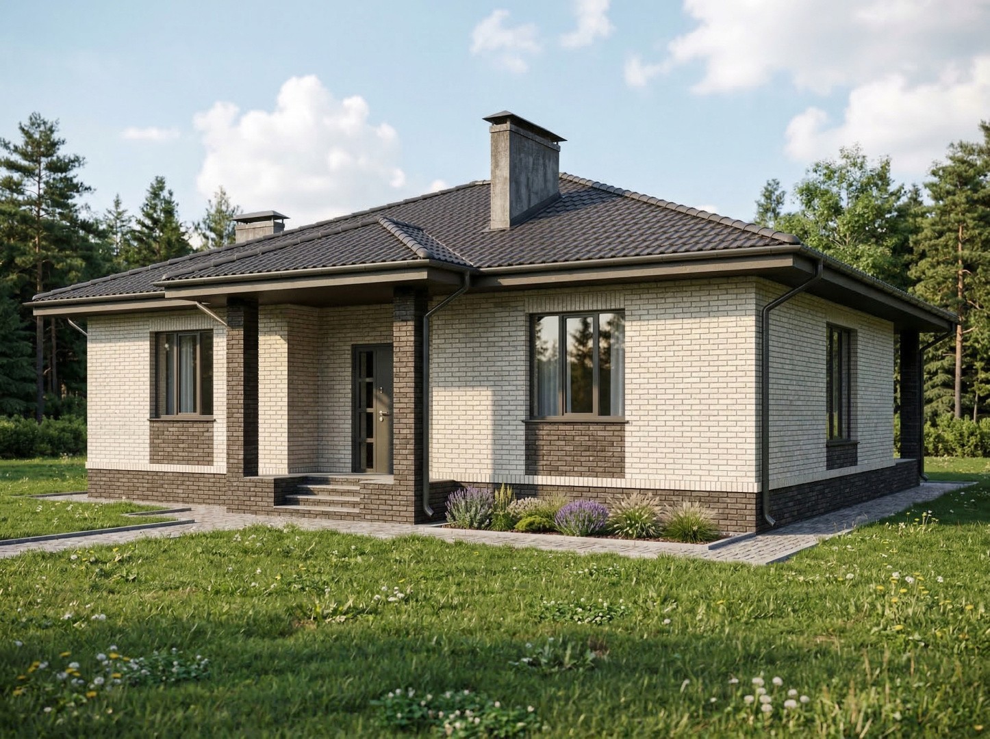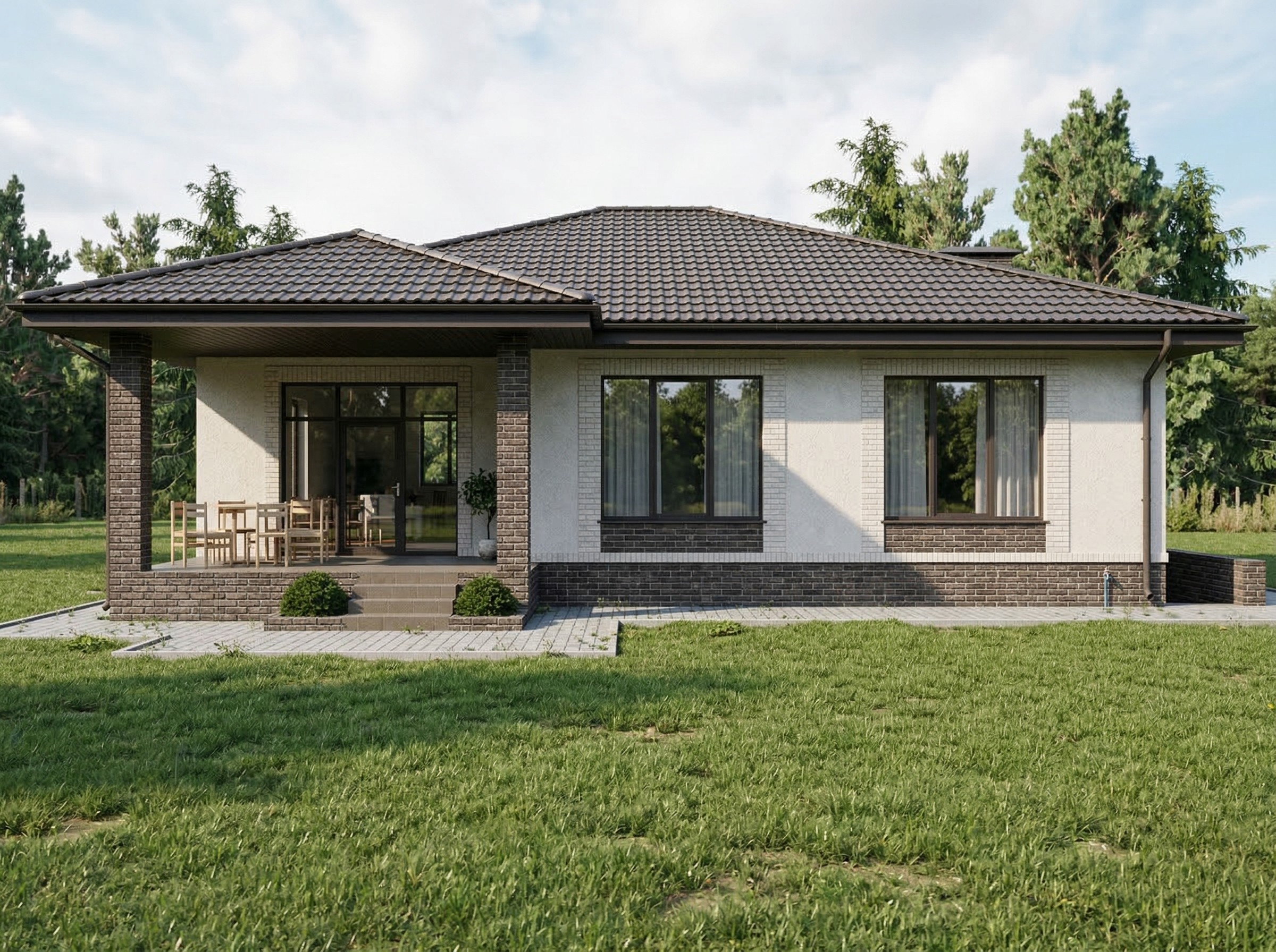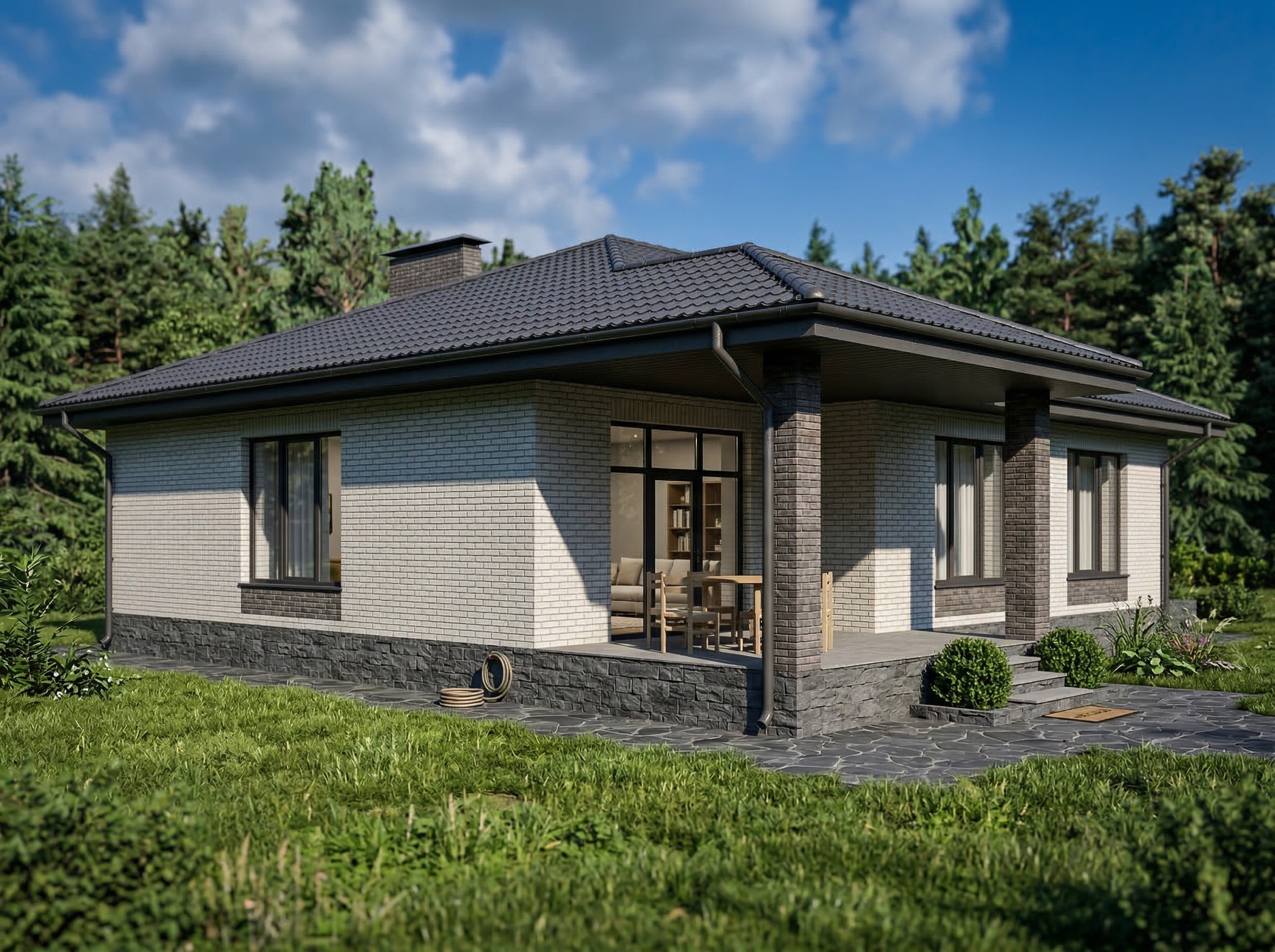 Одноэтажный жилой дом общей площадью 146 квадратных метров. Стены возведены из керамических блоков