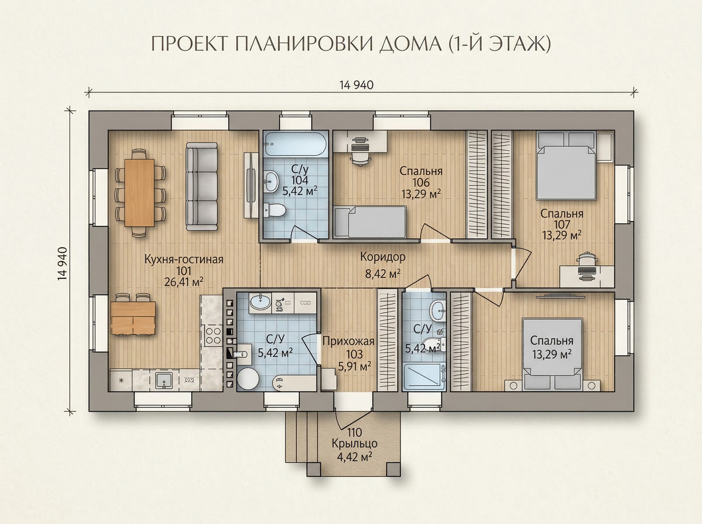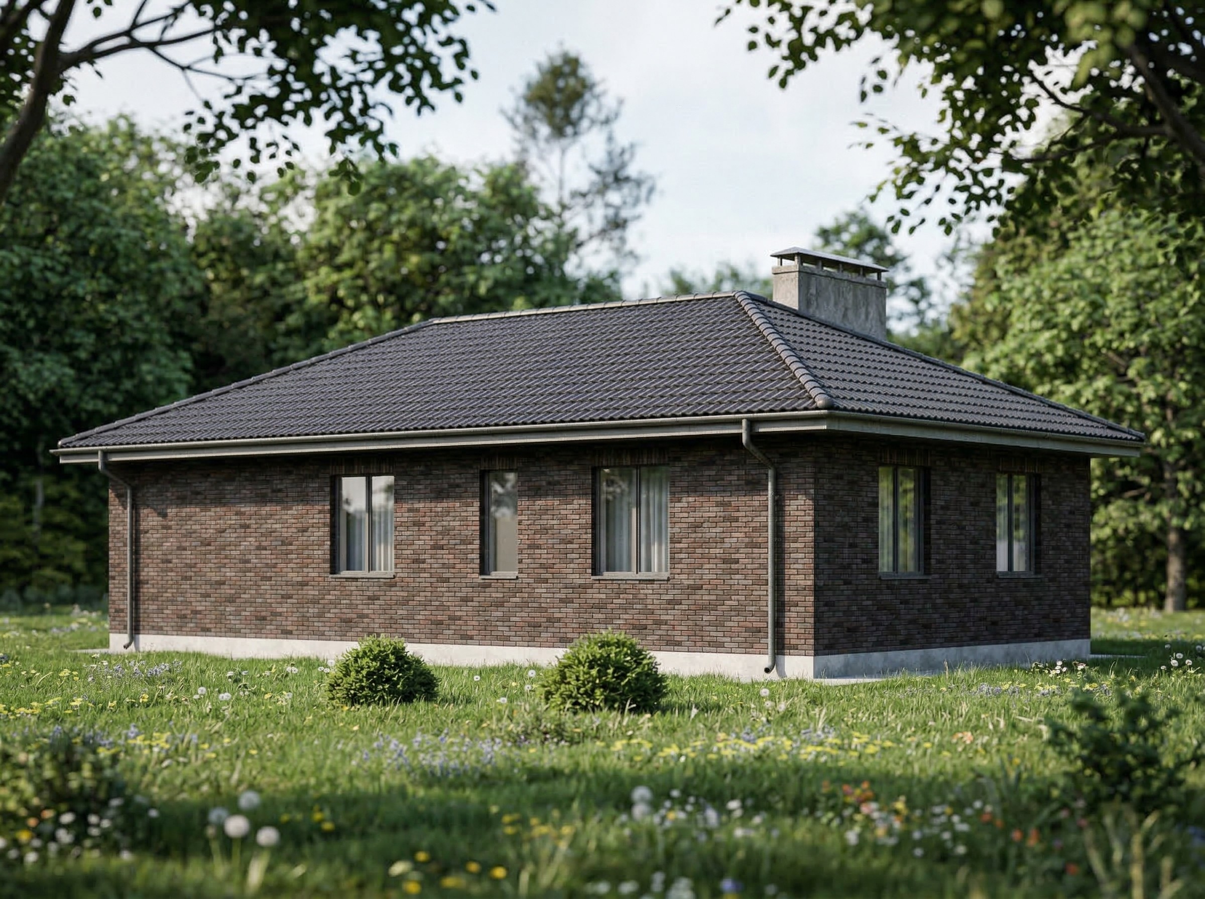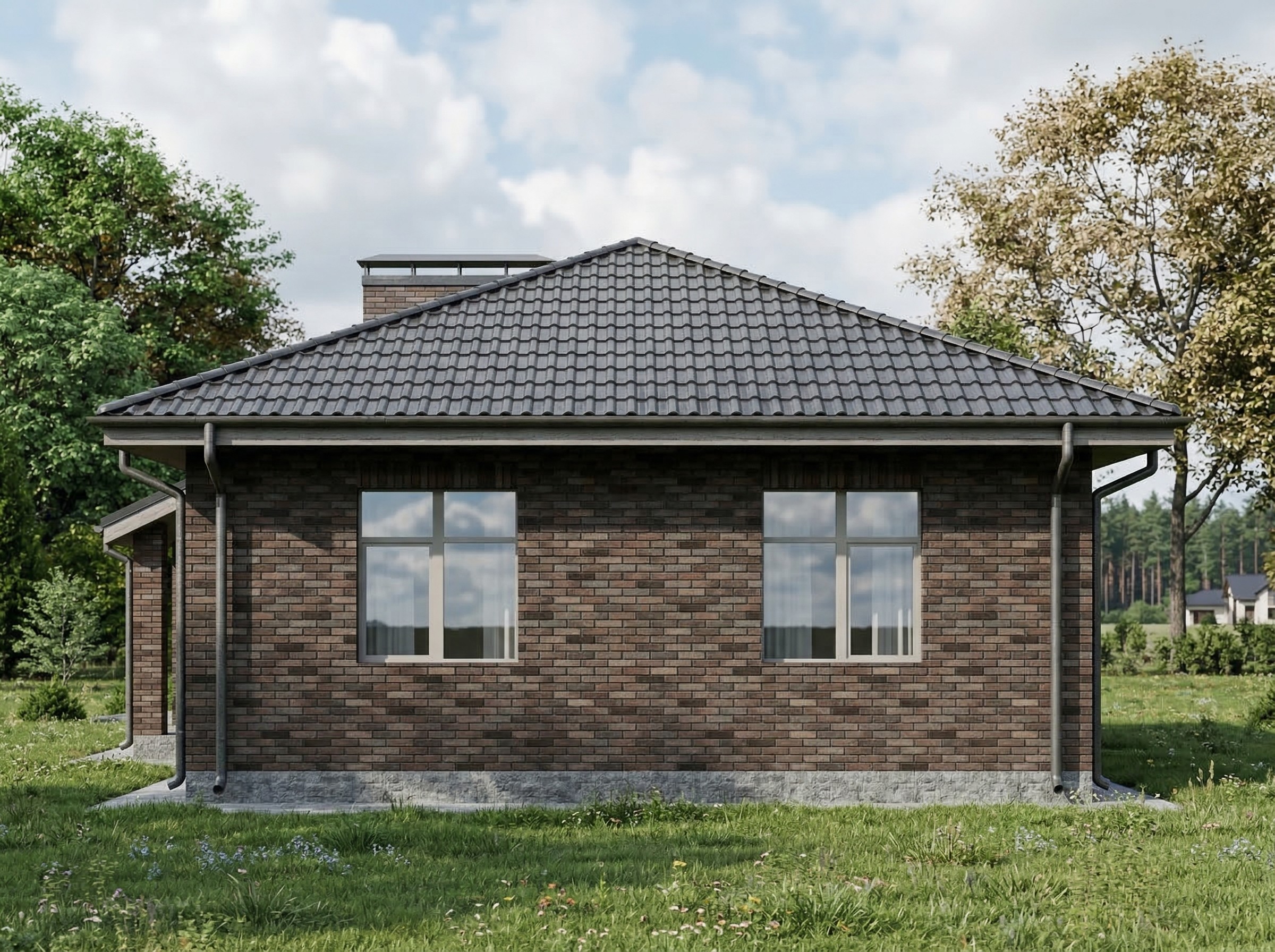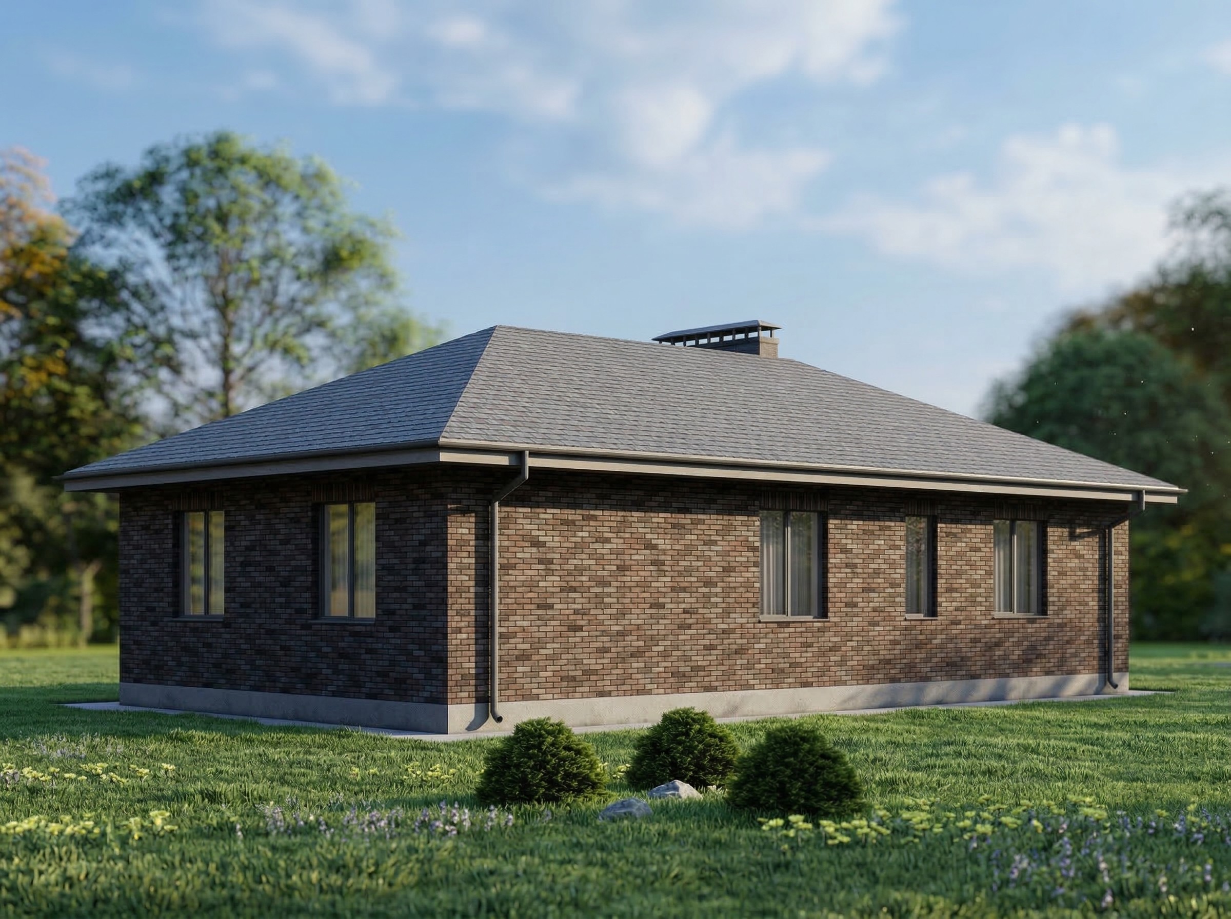 Одноэтажный жилой дом общей площадью 220 квадратных метров. Стены возведены из керамических блоков