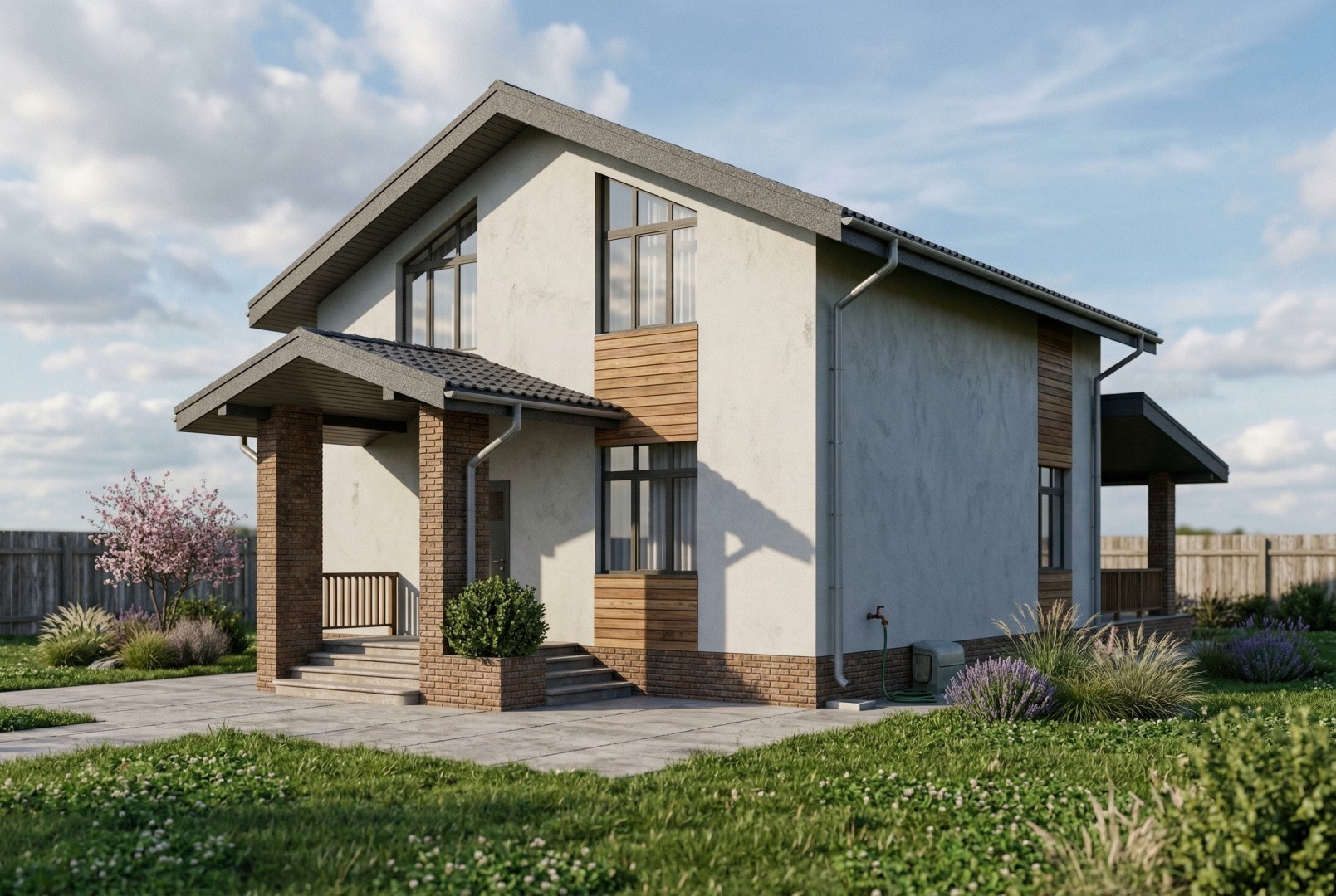 Одноэтажный жилой дом общей площадью 220 квадратных метров. Стены возведены из керамических блоков