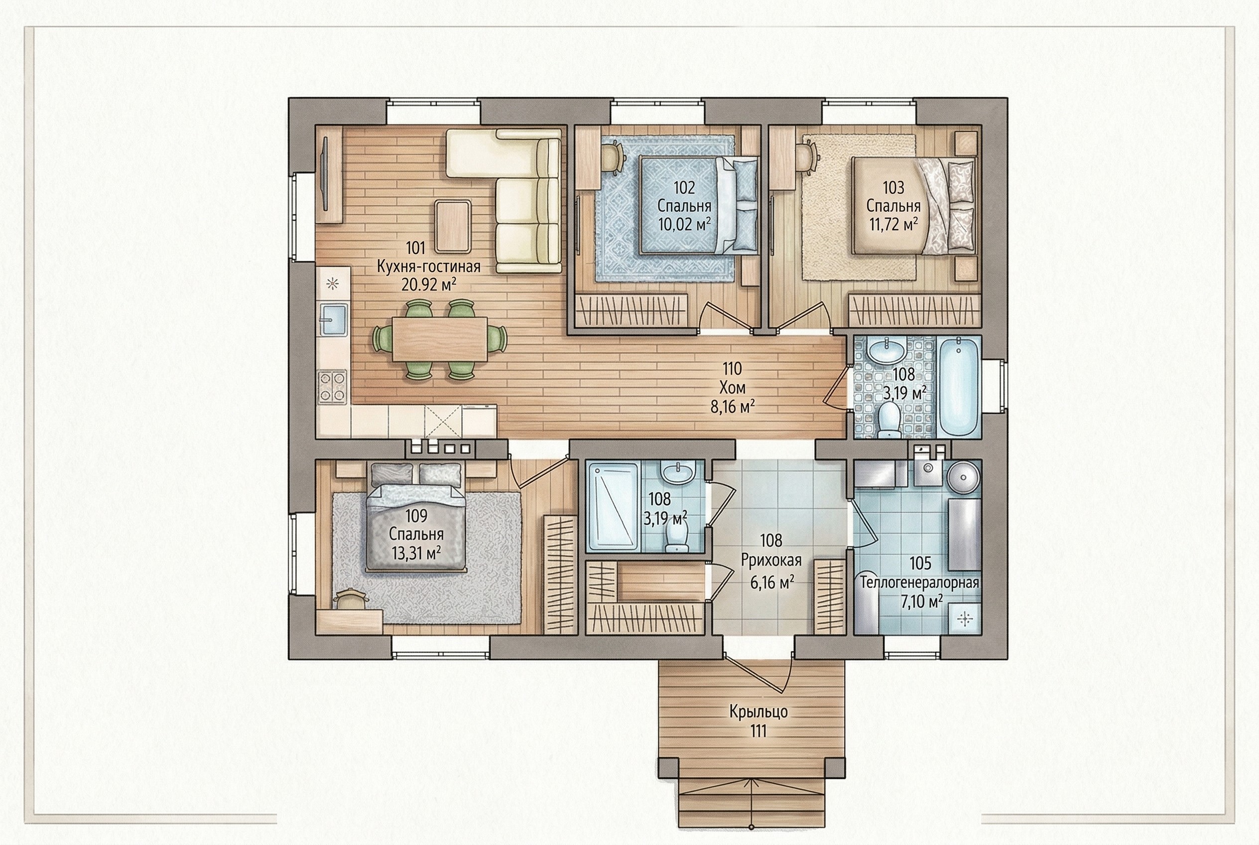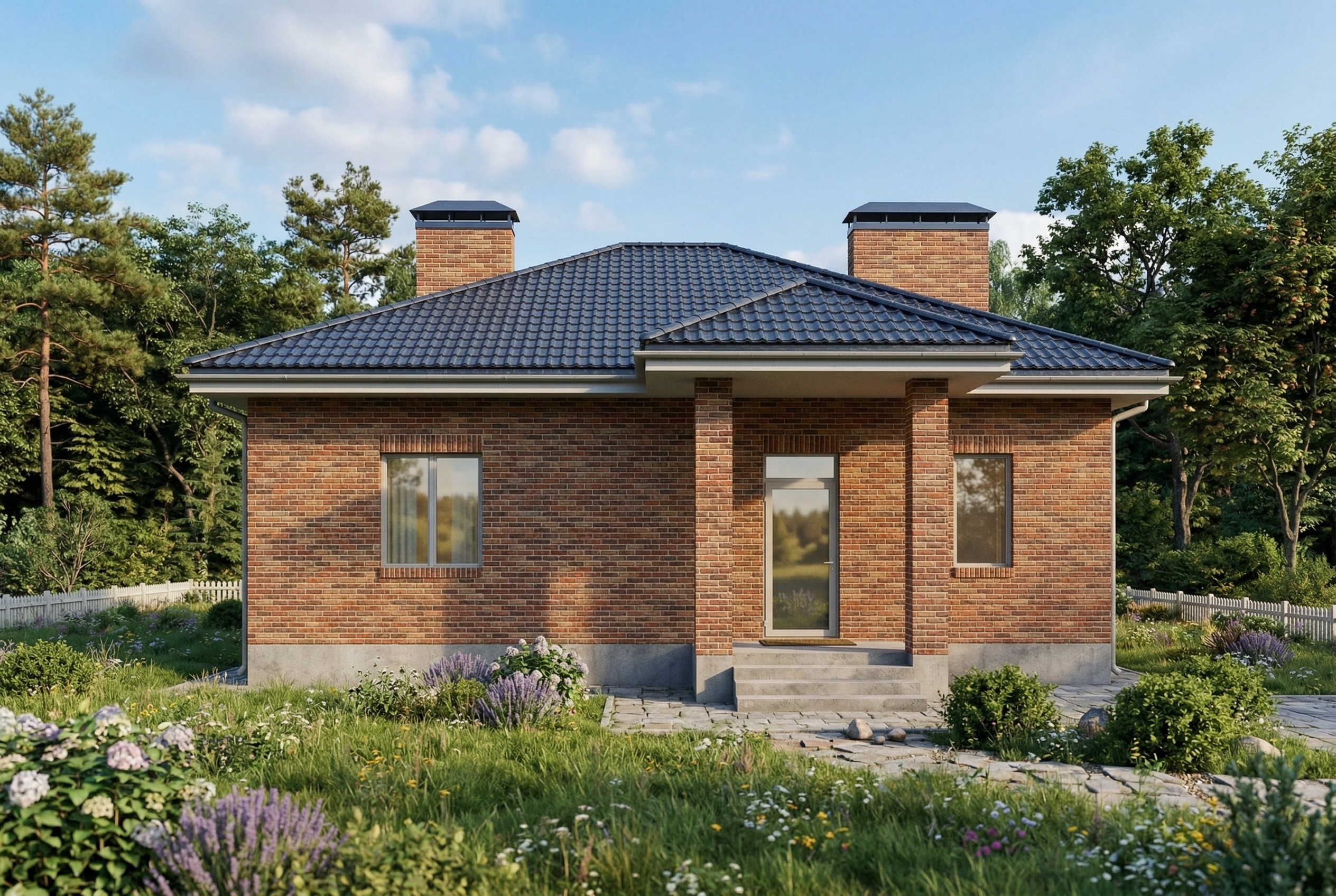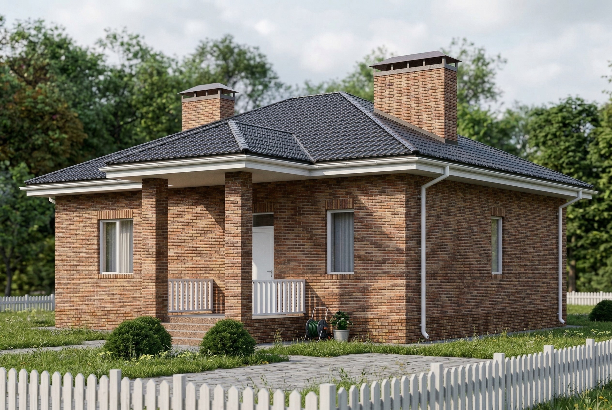 Одноэтажный жилой дом общей площадью 107 квадратных метров. Стены возведены из керамических блоков